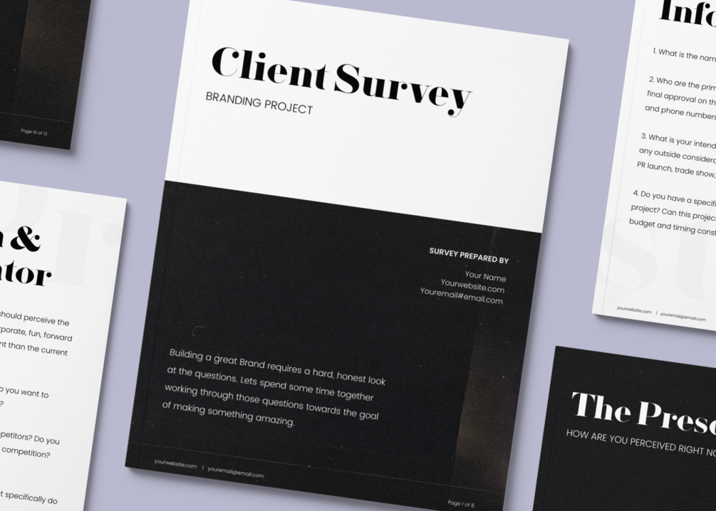 Want to start charging for branding strategy? Use this document to lead the client through a series of questions during your initial client meeting.